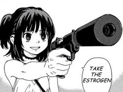 Murder Princess, one of the mid thousands anime produced out of the anime studio formerly known as Bee Train found its way to my eyes though a cleverly placed plug in the back of a favorite Broccoli Books manga. Its formula could mostly be summed up as an edgy then, blood splatter, chest piercing, slice & dice seinen yuri. And so appears deceptively common until it lays claim to a unique element in the way it deploys its rendition of the Freaky Friday gimmick as the princess falls off a cliff with a bounty hunter.